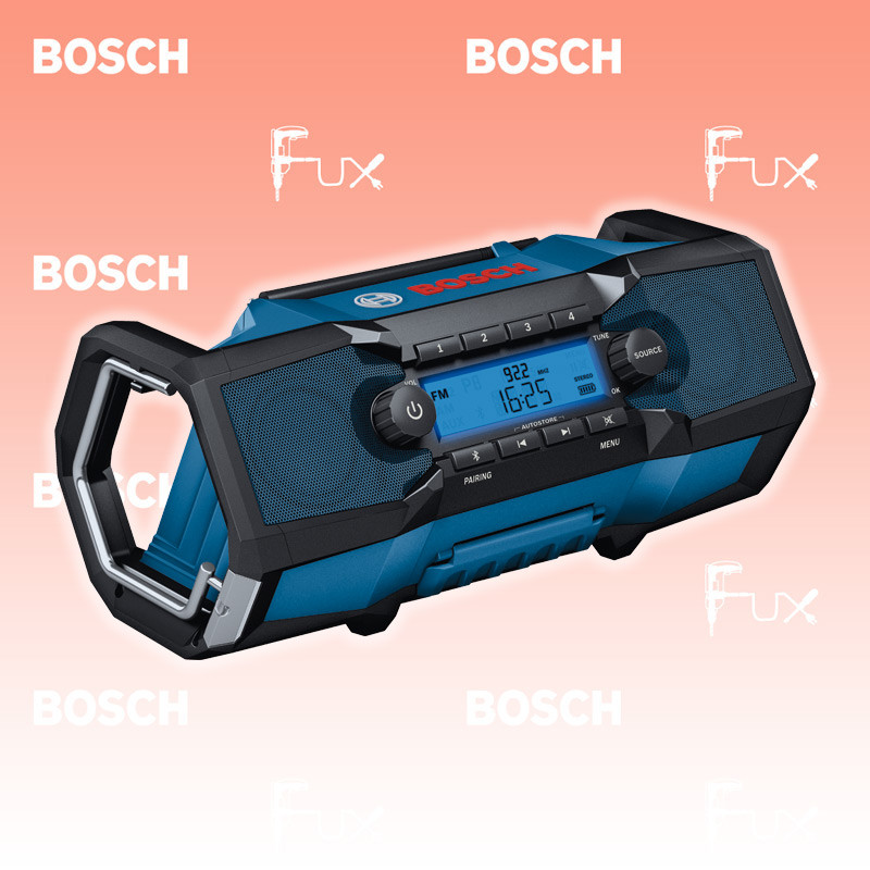 Dieses Radio sorgt ideal für Unterhaltung auf der Baustelle – sowohl über Radioempfang als auch mit dem Smartphone als Musikquelle. Das Gerät ist mit Bosch Professional 18V-Akkus kompatibel (1,5 bis 8 Ah).