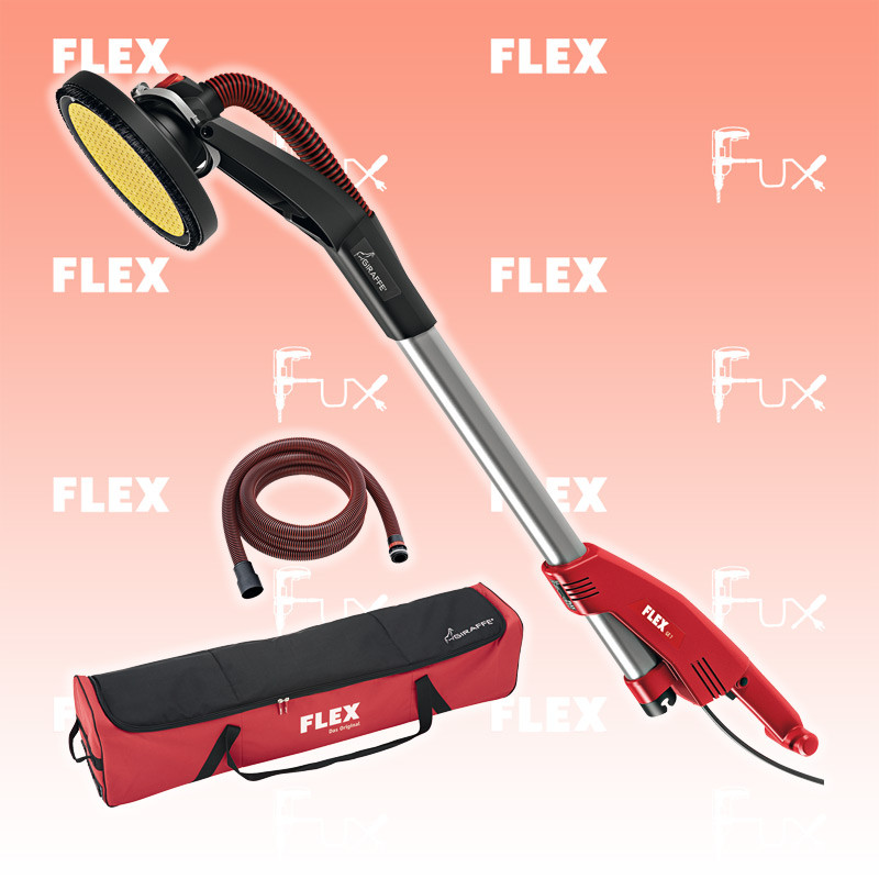 Zu "Wand- und Deckenschleifer Giraffe®" von Flex Flex GE 7 + MH-O + SH Wand-Deckenschleifer Giraffe® Bestell- und Artikelnummer: 494-526 Elektronik: mit Drehzahlkonstanthaltung, Sanftanlauf, Überlastungsschutz und Drehzahlvorwahl mit Stellrad Sehr handliche, leichte Maschine mit optimalen Bedienungskomfort. Ermöglicht ermüdungsarmes und ergonomisches Arbeiten Ausgestattet mit innovativem Wechselkopf-System. Schleifköpfe lassen sich mit einem Klick anbringen und entfernen Rundschleifkopf für die standardmäße Wandbearbeitung Leichte Handhabung: durch optimale Balance zwischen Motor und Schleifkopf Zuverlässige Kraftübertragung und hohe Flexibilität durch die flexible Antriebswelle. Seit Jahrzehnten bewährte „FLEX Technik“. Durch dieses Konstruktionsprinzip wird das Gewicht am Kopf der Giraffe® auf ein Minimum reduziert. Das erleichtert die Handhabung. Kardanisch gelagerter Schleifkopf sorgt für hohe Flexibilität und optimale Anpassung beim Schleifen an Wänden und Decken. Die effektive Absaugung zwischen Bürstenkranz und Schleifteller verhindert ein Zusetzen des Schleifmittels und sorgt für staubfreies Arbeiten Anschlussmöglichkeit für die FLEX Sicherheitssauger mit dem FLEX Clip-System am Führungsrohr Staubgeschützter Ein-/Ausschalter Sehr flexibel durch eine optionale Verlängerung (Zubehör) um 500 mm für große Raumhöhen, werkzeuglos montierbar Mit dem umfangreichen Schleifmittel-Sortiment ideal geeignet für das Verschleifen von Gipskarton-, Vollwärmeschutz-Styroporplatten, sowie zur Lackiervorbereitung Die Bearbeitung von sehr großen Flächen und Raumhöhen bis 3,40 m ist durch den optionalen Einsatz des GM 340 möglich Mit dem innovativen, textilen Transportsystem lassen sich Maschine und Zubehör mühelos transportieren. Die Giraffe® muss nicht montiert werden, sondern ist sofort einsatzbereit Technische Daten Leistungsaufnahme 710 Watt Leistungsabgabe 410 Watt Leerlaufdrehzahl 1100 - 1650 /min Schleifscheiben-Ø 225 mm Werkzeugaufnahme kletten Neigungswinkel am Kopf 100 ° Kabellänge 5,0 m Länge 1520 mm Gewicht 4,2 kg Standard-Ausrüstung Rundschleifkopf MH-O Clip-Schnellspannring SH-FC 32 Antistatik-Saugschlauch 32 mm Ø x 4 m mit Rastanschluss und Anschlussmuffe für Sauger mit Nebenluftregelung Transporttasche Zubehör Listenpreis CHF 1'378.90 Fuxpreis CHF 1'103.00 inkl. 8.1% MwSt Versand CHF 15.00 Kein Grauimport! Produkt bestellen Das Produkt ist momentan nicht lieferbar!Bestätigen sie, dass sie damit einverstanden sind! 1 Stück 2 Stück 3 Stück 4 Stück 5 Stück 6 Stück 7 Stück 8 Stück 9 Stück 10 Stück Alle Angaben ohne Gewähr und solange Vorrat reicht!Lehrlingsrabatt? Produkt als PDF AKTION 20%