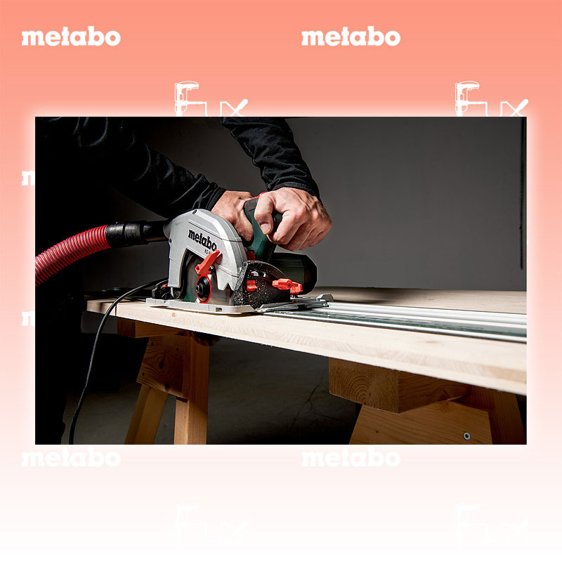 Zu "Handkreissägen" von Metabo Metabo KS 66 FS Set Handkreissäge Bestell- und Artikelnummer: 691135520 Robuste Handkreissäge, direkt einsetzbar auf Führungsschienen von Metabo und anderen Herstellern für präzise, lange Schnitte Schnelle, exakte Kappschnitte durch einfaches Koppeln mit einer Metabo Kappschiene KFS (Zubehör) Leichte Führungsplatte aus Aluminiumdruckguss Griffbereich mit rutschfester Softgrip-Oberfläche Gut sichtbarer Schnittanzeiger zum Sägen nach Anriss 0°-Position nachjustierbar für höchste Schnittgenauigkeit Absaugmöglichkeit durch Anschluss eines Allessaugers Späneauswurf lenkbar durch drehbaren Absaugstutzen Technische Daten Nennaufnahmeleistung 1500 W Abgabeleistung 840 W Max. Schnitttiefe bei 90° 66 mm Max. Schnitttiefe bei 45° 47 mm Max. Schnitttiefe mit Führungsschiene 61 mm Sägeblatt-Ø x Bohrung 190 x 30 mm Schwenkbereich von/ bis 0 / + 47 ° Leerlaufdrehzahl 5000 /min Drehzahl bei Nennlast 3800 /min Max. Schnittgeschwindigkeit 50 m/s Gewicht ohne Netzkabel 4.9 kg Kabellänge 4 m Standard-Ausrüstung Führungsschiene FS 160 (160 cm) Sechskantschlüssel metaBOX 340 Hartmetall-Kreissägeblatt (24 Zähne) Parallelanschlag Geliefert im Koffer Zubehör Verbrauchsmaterial Listenpreis CHF 399.00 Fuxpreis CHF 339.00 inkl. 8.1% MwSt, inkl vRG Frankolieferung Kein Grauimport! Produkt bestellen 1 Stück 2 Stück 3 Stück 4 Stück 5 Stück 6 Stück 7 Stück 8 Stück 9 Stück 10 Stück Option: Bestellen Sie das Produkt zum Listenpreis, und erhalten dafür 36 Monate Fux ALL-IN-ServiceInfos Alle Angaben ohne Gewähr und solange Vorrat reicht!Wiederverkäufer werden?Lehrlingsrabatt? Produkt als PDF AKTION 15%