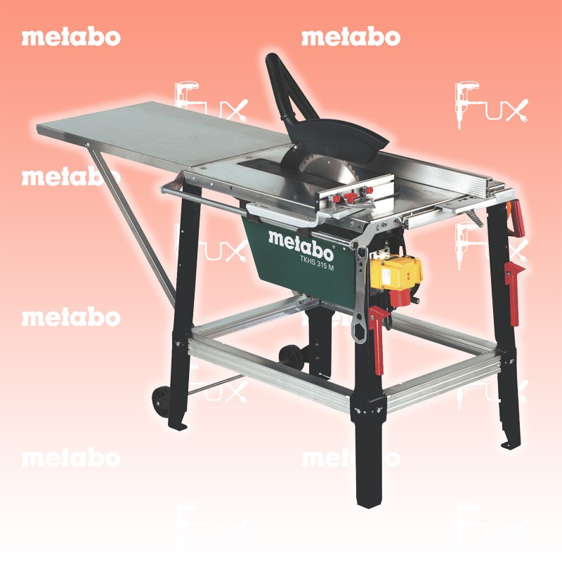 Zu "Baukreissägen" von Metabo Metabo TKHS 315 M - 4,2 DNB Tischkreissäge Bestell- und Artikelnummer: 0103153300 Präzise Tischkreissäge in Profi-Ausstattung - schnell gerüstet für jeden Einsatz Ideal zum Sägen von Kanthölzern, Brettern, Platten und holzähnlichen Materialien in der Werkstatt und auf der Baustelle Leistungsstarker Universalmotor An der serienmäßigen Späneabsaugeinrichtung kann eine Späneabsauganlage oder ein Allessauger angeschlossen werden Stabiler Parallelanschlag mit Schnellfixierung Stufenlos höhenverstellbares Sägeblatt Sägeblatt neigbar Robuste, pulverbeschichtete Stahlblechkonstruktion und verzinkte Tischplatte Abklappbare Tischverlängerung Gestell und Motor vormontiert Für Drehstrom Technische Daten Leistungsaufnahme 4.200 W Maße L x B x H 1.700 x 700 x 1.000 mm Tischgröße 800 x 600 mm Leerlaufdrehzahl 2.990 min-1 Schnitthöhe 0 - 85 mm Max. Schnitthöhe 90/45° 85 mm/53 mm Sägeblatt-Schwenkbereich 0 - 45 ° Sägeblatt Ø 315 x 30 mm Gewicht 77 kg Standard-Ausrüstung Hartmetall-Sägeblatt mit Wechselzahn (24 Zähne) Fahrgestell inkl. Handgriffe Parallelanschlag Winkelanschlag Tischverlängerung (600 x 800 mm) Späneabsaugeinrichtung Späneabsauganschlüsse Schiebestock Zubehör Verbrauchsmaterial Listenpreis CHF 929.00 Fuxpreis CHF 790.00 inkl. 8.1% MwSt, inkl vRG Frankolieferung Kein Grauimport! Produkt bestellen 1 Stück 2 Stück 3 Stück 4 Stück 5 Stück 6 Stück 7 Stück 8 Stück 9 Stück 10 Stück Option: Bestellen Sie das Produkt zum Listenpreis, und erhalten dafür 36 Monate Fux ALL-IN-ServiceInfos Alle Angaben ohne Gewähr und solange Vorrat reicht!Wiederverkäufer werden?Lehrlingsrabatt? Produkt als PDF AKTION 15%