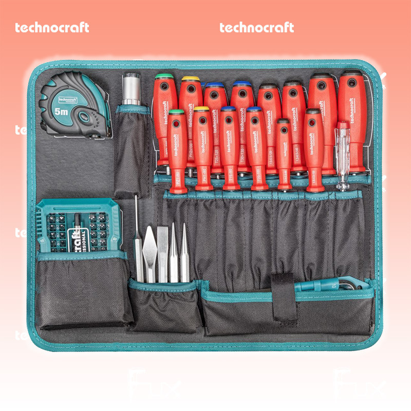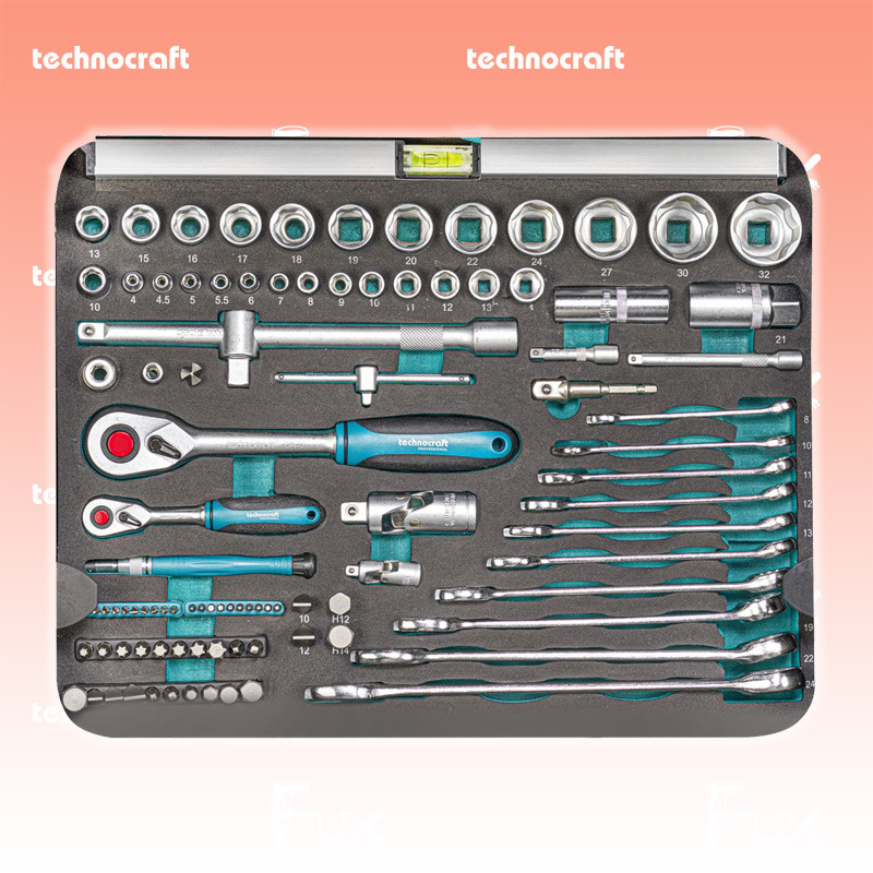 Sehr robuster, wasserdichter Rollkoffer. Das qualitativ hochstehenden Werkzeugsortiment ist ausgerichtet auf die Anforderungen auf der Montage und im Service. Zudem ist der Koffer dank Rollen bequem zu transportieren. 213 Qualitätswerkzeuge - jederzeit im Zugriff