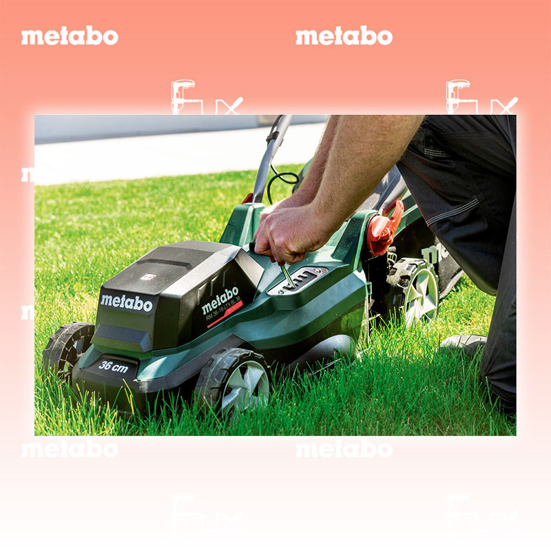 Zu "Akku Rasenmäher" von Metabo FULL Service: 36 Monate zum Nulltarif für Sie! Weitere Infos zum FULL Service Metabo RM 36-18 LTX BL 36 Akku Rasenmäher Bestell- und Artikelnummer: 601716850 Kompakter, wendiger Akku-Rasenmäher zum randnahen Mähen und Mulchen von Grundstücken bis 350 m² Mähgut wird wahlweise im flexiblen Fangsack gesammelt oder sofort zum Verbleib auf der Grünfläche gemulcht Starker Brushless-Motor für hohe Schnittperformance und lange Laufzeit pro Akkuladung Zentrale, einfach bedienbare Schnitthöheneinstellung in 5 Stufen Randnaher, sauberer Schnitt durch hochwertiges Sichelmesser und integrierte Rasenkämme Ergonomisches Arbeiten dank höhenverstellbarem Schiebebügel mit gummiertem Griffbereich Einfaches Manövrieren dank leichtem Kunststoffdeck Einfacher Transport und platzsparende Lagerung durch Tragegriffe und zweifach klappbaren Bügel mit Schnellspanner Fangsack mit Füllstandsfenster Umweltfreundlich und leise durch Akkubetrieb, dadurch auch in lärmsensiblen Bereichen einsetzbar 100% Kompatibilität zur 18-Volt-Klasse: kraftvoller 36-Volt-Betrieb mit zwei 18-Volt-Akkupacks von Metabo Kombinierbar mit allen 18V-Akkupacks und Ladegeräten der CAS Marken: www.cordless-alliance-system.com OHNE AKKUS UND LADEGERÄT Technische Daten Akkuspannung 2 x 18 V Schnittbreite 36 cm Schnitthöhe 20 - 70 mm Schnitthöhenstufen 5 Fangsackvolumen 45 l Leerlaufdrehzahl 4000 /min Gewicht ohne Akkupack 12.6 kg Gewicht mit Akkupack 13.5 kg Standard-Ausrüstung Fangsack Sicherheitsschlüssel ohne Akkupack, ohne Ladegerät Sichelmesser Mulchkeil Zubehör Listenpreis CHF 289.00 Fuxpreis CHF 246.00 inkl. 8.1% MwSt, inkl vRG Frankolieferung Kein Grauimport! Produkt bestellen 1 Stück 2 Stück 3 Stück 4 Stück 5 Stück 6 Stück 7 Stück 8 Stück 9 Stück 10 Stück Alle Angaben ohne Gewähr und solange Vorrat reicht!Wiederverkäufer werden?Lehrlingsrabatt? Produkt als PDFVideo LiHD 1Video LiHD 2 360° Ansicht AKTION 15%