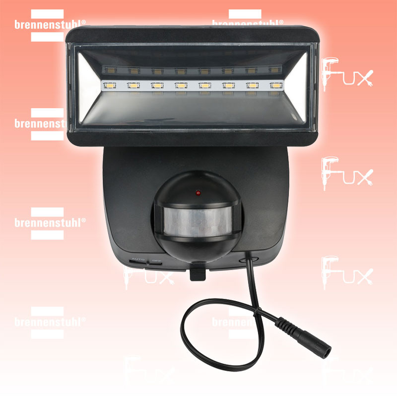 Zu "LED Solarlampe" von Brennenstuhl Brennenstuhl Solar LED-Strahler SOL 800 Bestell- und Artikelnummer: 1170950010 Der Solar LED-Strahler SOL 800 plus von Brennenstuhl in der Farbe schwarz für den Außenbereich mit Solar, Akku und Bewegungsmelder besticht durch seine Qualität und Sicherheit in allen Bereichen. Zudem überzeugt er durch folgende Eigenschaften: Für den Einsatz im Freien, IP 44 Unabhängig von Stromnetz zu betreiben – ideal für Carports, Vordächer, Gärten Solar LED-Strahler mit Infrarot-Bewegungsmelder und separatem Solarmodul 8 hochwertige Marken LED´s für super helle, großflächige Ausleuchtung Solar LED-Außenleuchte horizontal und vertikal schwenkbar Infrarot-Bewegungsmelder mit max. 180° Erfassungswinkel und max. 12m Reichweite Einschaltdauer regelbar bis max. ca. 1 Minute Inklusive Li-Ion Akku 3,7V / 3,6Ah mit eingebautem Überladungs- und Tiefentladungsschutz für einen kontinuierlichen Ladeprozess der Akkus Leuchtdauer bei voll geladenen Akkus ca. 3,5 Stunden Lichtstrom: 400 lm Kabellänge: 4,75 m Funktionen: Auto/ off Lichtfarbe: 6.000 K Lebensdauer: 50.000 h Solarpanel Leistung: 2,2Wp Betriebstemperatur: -10 bis +45° C Technische Daten Batterie enthalten: Farbe: schwarz Art der Leuchte: Wandleuchte Werkstoff Gehäuse: Kunststoff Schutzklasse - e: III Eingangsspannungsart: Gleichspannung (DC) Schutzart (IP): IP44 Höhe: 11,10 cm Länge: 18 cm Gewicht: 1,14 kg Breite: 18,40 cm Farbtemperatur: 6000 K Batterie Technologie: Lithium-Ion Spannung: 3,70 V Aufladbar: Batterie Bauart: Akku fest eingebaut Lichtstrom: 400 lm Kapazität: 3,60 Ah Leuchtdauer: 3 h Erfassungswinkel horizontal: 180 ° Max. Reichweite frontal: 12 m Max. Einschaltdauer: 1 min Listenpreis CHF 90.50 Fuxpreis CHF 77.00 inkl. 8.1% MwSt Versand CHF 15.00 Kein Grauimport! Produkt bestellen 1 Stück 2 Stück 3 Stück 4 Stück 5 Stück 6 Stück 7 Stück 8 Stück 9 Stück 10 Stück Alle Angaben ohne Gewähr und solange Vorrat reicht! Produkt als PDF AKTION 15%