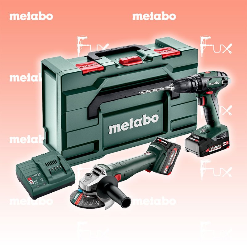 Zu "Combo Set 18 Volt " von Metabo FULL Service: 36 Monate zum Nulltarif für Sie! Weitere Infos zum FULL Service Dieses Produkt ist CAS kompatibel! Weitere Infos zu CAS Metabo Combo Set 2.4.4 18 V Akku Maschinen Set Bestell- und Artikelnummer: 685205500 Leichter, kompakter Akku-Schlagbohrschrauber mit extrem kurzer Bauform für den vielseitigen Einsatz Akku-Winkelschleifer W 18 L 9-125 Quick: Robuster Akku-Winkelschleifer mit starkem Motor und schlanker Bauform für den universellen Einsatz Technische Daten SB 18 (6022455650) Akku-Schlagbohrmaschine Art des Akkupacks Li-Ion Akkuspannung 18 V Max. Drehmoment weich 24 Nm Max. Drehmoment hart 59 Nm Bohr-Ø Stahl 10 mm Bohr-Ø Weichholz 20 mm Leerlaufdrehzahlen 0 - 450 / 0 - 1600 /min Gewicht (mit Akkupack) 1.3 kg W 18 L 9-125 Quick (602247850) Akku-Winkelschleifer Schleifscheiben-Ø 125 mm Leerlaufdrehzahl 8.500 /min Spindelgewinde M 14 Akkuspannung 18 V Gewicht (mit Akkupack) 1.6 kg Standard-Ausrüstung Akku-Schlagbohrschrauber SB 18 Akku-Winkelschleifer W 18 L 9-125 Schutzhaube Stützflansch Zusatzhandgriff Li-Power Akkupack (18 V/2,0 Ah) Li-Power Akkupack (18 V/4,0 Ah) Ladegerät SC 30 metaBOX 165 L Geliefert im Koffer Zubehör Verbrauchsmaterial Listenpreis CHF 349.00 Fuxpreis CHF 297.00 inkl. 8.1% MwSt, inkl vRG Frankolieferung Kein Grauimport! Produkt bestellen 1 Stück 2 Stück 3 Stück 4 Stück 5 Stück 6 Stück 7 Stück 8 Stück 9 Stück 10 Stück Alle Angaben ohne Gewähr und solange Vorrat reicht!Wiederverkäufer werden?Lehrlingsrabatt? Produkt als PDF AKTION 15%