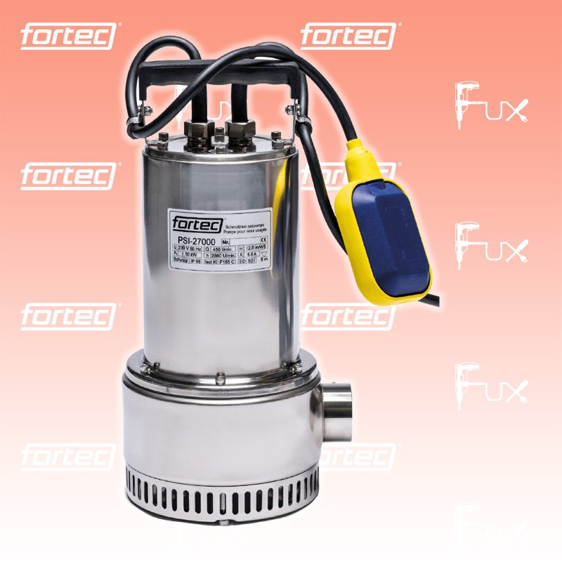 Zu "Schmutzwasserpumpen" von fortec fortec PSI-27000 Schmutzwasserpumpe Bestell- und Artikelnummer: PSI-27000 Schmutzwasser und Abwasser mit kleinen Sand- und Schlammanteilen. Einsatz: Schmutzwasser, Gruben, Teiche mit festen Partikeln im Industrie- und Heimbereich. Für Flüssigkeiten im Temperaturbereich bis +40 °C, mit PH Werten zwischen 4-10. Niveauregulierung mittels Schwimmerschalter. 27'000 L/Stunde 8 m max. Eintauchtiefe Temperatur der zu fördernden Flüssigkeit +40 °C Förderhöhe bis 12 Meter Mit Schwimmerschalter Geeignet für: Abwasser Teichwasser Schlammwasser Technische Daten Motor 230 V / 1.1 kw Fördermenge 27'000 l/h Förderhöhe 12 m Tauchtiefe max. 8 m Absaugniveau max. 30 mm Innengewinde G Zoll 1 1/2" Einsatz bei pH-Wert 4 - 10 Schutzart IP 68 Netzkabel 10 m Gewicht 13.0 kg Zubehör Listenpreis CHF 758.10 Fuxpreis CHF 667.00 inkl. 8.1% MwSt Frankolieferung Kein Grauimport! Produkt bestellen 1 Stück 2 Stück 3 Stück 4 Stück 5 Stück 6 Stück 7 Stück 8 Stück 9 Stück 10 Stück Alle Angaben ohne Gewähr und solange Vorrat reicht! Produkt als PDF AKTION 12%
