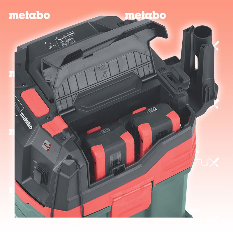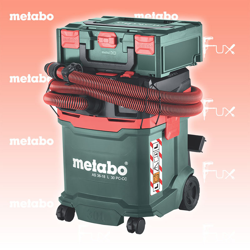 Zu "Akku Sauger " von Metabo FULL Service: 36 Monate zum Nulltarif für Sie! Weitere Infos zum FULL Service Dieses Produkt ist CAS kompatibel! Weitere Infos zu CAS Metabo AS 36-18 L 30 PC-CC Akku-Sauger Bestell- und Artikelnummer: 602073850 Kompakter, vielseitig einsetzbarer Akku-Sauger der Staubklasse L mit integrierter Filterabreinigung CordlessControl: der Sauger startet/stoppt automatisch beim Ein-/Ausschalten des am Schlauch angeschlossenen Akku-Werkzeugs von Metabo oder anderen Marken Nass-/Trockensauger mit gewerblicher Zulassung Anwenderschutz: zertifiziert nach EU-Norm für Stäube der Staubklasse L PressClean: manuelle Filterabreinigung durch starken Luftstrom bei Schalterbetätigung am Sauger in den Arbeitspausen Eco-Modus für längere Laufzeit pro Akkuladung, Boost-Modus für maximale Leistung Nachlaufautomatik zum völligen Entleeren des Saugschlauches Saugstopp beim Nasssaugen, wenn die maximale Füllhöhe erreicht wird Antistatik-Grundausstattung verhindert statische Aufladung bei Verwendung des geeigneten Zubehörs Schnelles Koppeln von metaBOXen mit Werkzeug und Zubehör auf dem Sauger für einfachen Standortwechsel Mitgeliefertes Saugerzubehör mit Quick-System für schnelles Umrüsten im Einsatz Einfacher Transport dank Schlauchhalterung und Depot für Rohre und Düsen Staub- und spritzwassergeschützes Akkufach mit verschließbarer Klappe Viele Marken, ein Akku-System: Dieses Produkt ist kombinierbar mit allen 18V-Akkupacks und Ladegeräten der CAS Marken: www.cordless-alliance-system.com OHNE AKKUS UND LADEGERÄT Technische Daten Akkuspannung 2 x 18 V Luftleistung max. 3.300 l/min Unterdruck 140 hPa (mbar) Filterfläche 3.500 Behältervolumen 30 l Saugschlauch-Ø 32 mm Schlauchlänge 3,2 m Gewicht ohne Akkupack 9.8 kg Standard-Ausrüstung Antistatik-Saugschlauch Quick (Ø 32 mm / 3,2 m) CordlessControl Sender mit Fixierband Ø 35 mm 3 Saugrohre aus Kunststoff Vliesfilterbeutel Saugdüse (120 mm breit) Bodendüse (300 mm breit) Fugendüse Bürstendüse Anschlussmuffe Innen-Ø 28 mm / Aussen-Ø 35 mm Handgriff-Zwischenstück Quick Professional ohne Akku und Ladegerät Zubehör Verbrauchsmaterial Listenpreis CHF 479.00 Fuxpreis CHF 407.00 inkl. 8.1% MwSt, inkl vRG Frankolieferung Kein Grauimport! Produkt bestellen 1 Stück 2 Stück 3 Stück 4 Stück 5 Stück 6 Stück 7 Stück 8 Stück 9 Stück 10 Stück Alle Angaben ohne Gewähr und solange Vorrat reicht!Wiederverkäufer werden?Lehrlingsrabatt? Produkt als PDFProduktevideoVideo LiHD 1Video LiHD 2 AKTION 15%