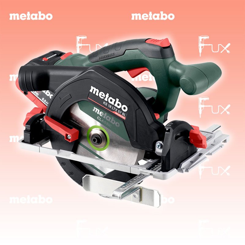 Zu "Akku Handkreissägen" von Metabo FULL Service: 36 Monate zum Nulltarif für Sie! Weitere Infos zum FULL Service Dieses Produkt ist CAS kompatibel! Weitere Infos zu CAS Metabo KS 18 LTX 57 BL Akku Handkreissäge Bestell- und Artikelnummer: 611857810 Durchzugsstarke, leichte Akku-Handkreissäge für den universellen Baustelleneinsatz Kraftvoller Brushless-Motor für schnellen Arbeitsfortschritt und höchste Effizienz Aluminium-Bodenplatte direkt einsetzbar auf Führungsschienen von Metabo sowie Mafell, Bosch, Festool, Makita, HiKOKI, Hilti und anderen Herstellern Schnelle, exakte Kappschnitte durch einfaches Koppeln mit einer Metabo Kappschiene KFS (Zubehör) Automatisches Ein-/Ausschalten des angeschlossenen Saugers durch CordlessControl (als Zubehör erhältlich) Auslaufbremse stoppt das Sägeblatt besonders schnell und erhöht die Sicherheit Winkelgenaue Schrägschnitte bis 50°, mit praktischem Rastpunkt bei 45° 0°-Position nachjustierbar für höchste Schnittgenauigkeit Gut sichtbarer Schnittanzeiger zum Sägen nach Anriss Handgriff mit rutschfester Softgrip-Oberfläche für sichere Führung Geringes Gewicht und kompaktes, ergonomisches Design Viele Marken, ein Akku-System: Dieses Produkt ist kombinierbar mit allen 18V-Akkupacks und Ladegeräten der CAS Marken: www.cordless-alliance-system.com Ergattere dir einen Akku bei der Registration auf metabo.ch Alle Produkte dieser Aktion anzeigen Technische Daten Akkuspannung 18 V Schwenkbereich von/bis 0 / + 50 ° Schnitttiefe einstellbar 0 - 57 mm Max. Schnitttiefe bei 90° 57 mm Max. Schnitttiefe bei 45° 43 mm Max. Schnitttiefe mit Führungsschiene 52 mm Sägeblatt-Ø x Bohrung 165 x 20 mm Leerlaufdrehzahl 5.000 /min Max. Schnittgeschwindigkeit 43 m/s Gewicht ohne Akkupack 2,7 kg Gewicht mit Akkupack 3,6 kg Standard-Ausrüstung Hartmetall-Kreissägeblatt (18 Zähne) 2 LiHD Akkupacks (18 V/8,0 Ah) Schnellladegerät ASC 145 "AIR COOLED" Metabox Parallelanschlag Sechskantschlüssel Geliefert im Koffer Zubehör Verbrauchsmaterial Listenpreis CHF 709.00 Fuxpreis CHF 603.00 inkl. 8.1% MwSt, inkl vRG Frankolieferung Kein Grauimport! Produkt bestellen 1 Stück 2 Stück 3 Stück 4 Stück 5 Stück 6 Stück 7 Stück 8 Stück 9 Stück 10 Stück Alle Angaben ohne Gewähr und solange Vorrat reicht!Wiederverkäufer werden?Lehrlingsrabatt? Produkt als PDFVideo LiHD 1Video LiHD 2 AKTION 15%