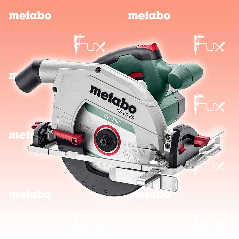 Zu "Handkreissägen" von Metabo Metabo KS 66 FS Handkreissäge Bestell- und Artikelnummer: 601066520 Robuste Handkreissäge, direkt einsetzbar auf Führungsschienen von Metabo und anderen Herstellern für präzise, lange Schnitte Schnelle, exakte Kappschnitte durch einfaches Koppeln mit einer Metabo Kappschiene KFS (Zubehör) Leichte Führungsplatte aus Aluminiumdruckguss Griffbereich mit rutschfester Softgrip-Oberfläche Gut sichtbarer Schnittanzeiger zum Sägen nach Anriss 0°-Position nachjustierbar für höchste Schnittgenauigkeit Absaugmöglichkeit durch Anschluss eines Allessaugers Späneauswurf lenkbar durch drehbaren Absaugstutzen Technische Daten Nennaufnahmeleistung 1500 W Abgabeleistung 840 W Max. Schnitttiefe bei 90° 66 mm Max. Schnitttiefe bei 45° 47 mm Max. Schnitttiefe mit Führungsschiene 61 mm Sägeblatt-Ø x Bohrung 190 x 30 mm Schwenkbereich von/ bis 0 / + 47 ° Leerlaufdrehzahl 5000 /min Drehzahl bei Nennlast 3800 /min Max. Schnittgeschwindigkeit 50 m/s Gewicht ohne Netzkabel 4.9 kg Kabellänge 4 m Standard-Ausrüstung Hartmetall-Kreissägeblatt (24 Zähne) Parallelanschlag Sechskantschlüssel metaBOX 340 Geliefert im Koffer Zubehör Verbrauchsmaterial Listenpreis CHF 339.00 Fuxpreis CHF 288.00 inkl. 8.1% MwSt, inkl vRG Frankolieferung Kein Grauimport! Produkt bestellen 1 Stück 2 Stück 3 Stück 4 Stück 5 Stück 6 Stück 7 Stück 8 Stück 9 Stück 10 Stück Option: Bestellen Sie das Produkt zum Listenpreis, und erhalten dafür 36 Monate Fux ALL-IN-ServiceInfos Alle Angaben ohne Gewähr und solange Vorrat reicht!Wiederverkäufer werden?Lehrlingsrabatt? Produkt als PDF AKTION 15%