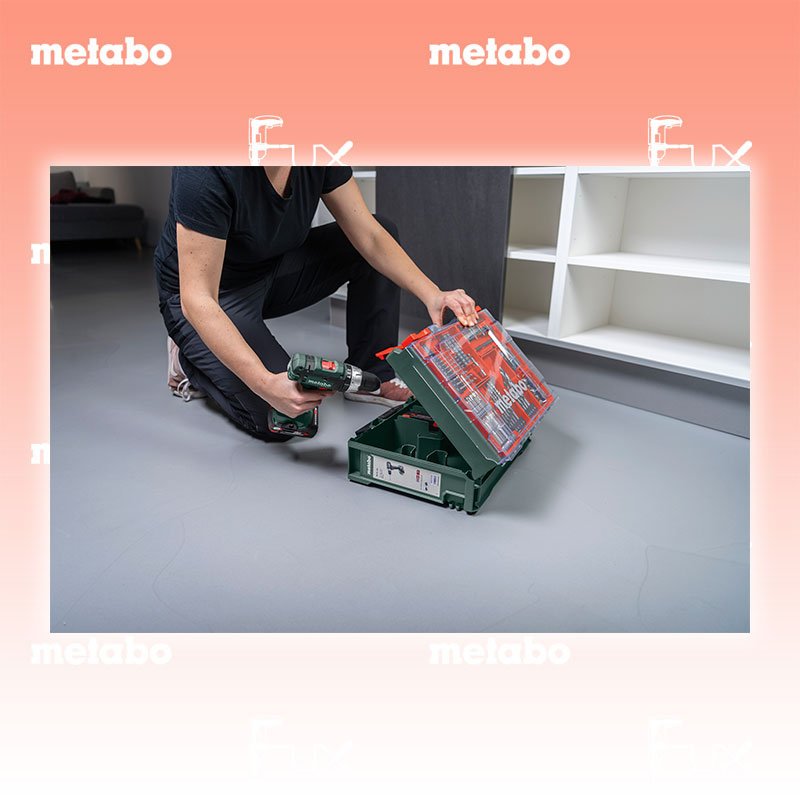 Zu "L SERIE" von Metabo FULL Service: 36 Monate zum Nulltarif für Sie! Weitere Infos zum FULL Service Dieses Produkt ist CAS kompatibel! Weitere Infos zu CAS Metabo SB 18 SET Akku-Schlagbohrmaschine Bestell- und Artikelnummer: 602245710 Leichter, kompakter Akku-Schlagbohrschrauber mit extrem kurzer Bauform für den vielseitigen Einsatz Schlagbohrfunktion zum Bohren in Mauerwerk Mobile Werkstatt (78-teilig): 5 Holzbohrer (4/5/6/8/10mm), 5 Steinbohrer (5/6/7/8/10mm), 14 HSS-Bohrer (1,5/1,5/2/2/2,5/3/3/3,5/4/4,5/5/5,5/6/6,5mm), 20 Schrauberbits Länge 25mm (PH1/PH2/PH2/PH3/PZ1/PZ2/PZ2/PZ2/PZ3/H3/H4/H5/H6/T15/T20/T25/T30/S4/S5/S6), 10 Schrauberbits Länge 50mm (S4/S5/S6/PZ1/PZ2/PZ3/T15/T20/T25/T30), 10 Schrauberbits Länge 75mm (S4/S5/S6/PZ1/PZ2/PZ3/T15/T20/T25/T30), Bithalter (60mm), 8 Steckschlüssel (6/7/8/9/10/11/12/13mm), Holzsenker (12,7mm), Zentrierstift (5x100mm), Cuttermesser mit 2 Ersatzklingen, Maßband (3m/10"), Bleistift (HB) Integriertes Arbeitslicht zum Ausleuchten der Arbeitsstelle Mit praktischem Gürtelhaken und Bitdepot, wahlweise rechts oder links fixierbar Viele Marken, ein Akku-System: Dieses Produkt ist kombinierbar mit allen 18V-Akkupacks und Ladegeräten der CAS Marken: www.cordless-alliance-system.com Technische Daten Akkuspannung 18 V Max. Drehmoment weich 24 Nm Max. Drehmoment hart 48 Nm Einstellbares Drehmoment 0.5 - 4.5 Nm Bohr-Ø Mauerwerk 10 mm Bohr-Ø Stahl 10 mm Bohr-Ø Weichholz 20 mm Leerlaufdrehzahl 0 - 450 / 0 - 1600 /min Max. Schlagzahl 24000 /min Bohrfutterspannweite 1 - 10 mm Gewicht ohne Akkupack 0.92 kg Gewicht mit Akkupack 1.3 kg Standard-Ausrüstung Schnellspannbohrfutter Ladegerät SC 30 Kunststoffkoffer Zubehör-Set Gürtelhaken und Bitdepot 2 Li-Power Akkupacks (18 V/2,0 Ah) Geliefert im Koffer Zubehör Verbrauchsmaterial Listenpreis CHF 219.00 Fuxpreis CHF 186.00 inkl. 8.1% MwSt, inkl vRG Frankolieferung Kein Grauimport! Produkt bestellen 1 Stück 2 Stück 3 Stück 4 Stück 5 Stück 6 Stück 7 Stück 8 Stück 9 Stück 10 Stück Alle Angaben ohne Gewähr und solange Vorrat reicht!Wiederverkäufer werden?Lehrlingsrabatt? Produkt als PDF AKTION 15%