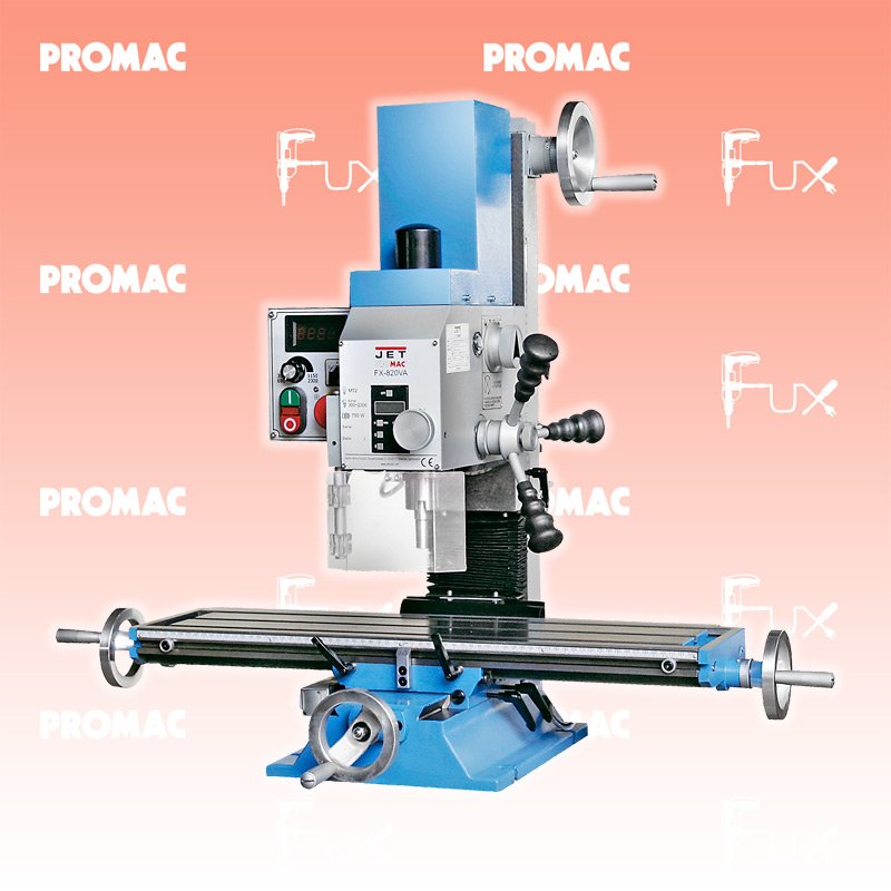 Zu "Bohr / Fräsmaschinen " von Promac Promac FX-820VA Bohr-Fräsmaschine 230V Bestell- und Artikelnummer: FX-820VA Stufenlose Drehzahlregulierung des drehstarken Synchronmotor mittels Vollwellenelektronik Digitale Anzeige der Drehzahl und der Bohrtiefe 2-stufiges Umsetzungsgetriebe für eine starkes Drehmoment auch bei kleinen Drehzahlen Rechts-/ Linkslauf Bohrkopf über Schwalbenschwanzsäule leicht und exakt verstellbar Bohrkopf 90° links und 30° rechts schwenkbar Robuster Kreuztisch mit 2 parallelen T-Nuten 12mm, ist präzise in der X- und Y-Achse verstellbar Elektrisch gesicherter Splitterschutz für sicheres Arbeiten Technische Daten Motorspannung 230 Volt Motorleistung 0.75 kW Bohrleistung Stahl Ø 20 mm Fräsleistung Stahl Ø 16 mm Bohrhub mm 50 Spindelkonus MK2 Spindeldurchmesser 60 mm Kopfdrehung L / R 45° Tischgrösse 700 x 180 mm X - Y Achse 480 x 175 mm Z Achse 280 mm T-Nutenbreite (3 Stück) 10 mm Masse (max) h/l/b 860 x 550 x 860 mm Gewicht netto 122 kg Gewicht brutto 147 kg Standard-Ausrüstung Kegeldorn MK2/B16 Schlüsselbohrfutter 3.0-13mm Anzugstange M10 Zubehör Listenpreis CHF 2'685.20 Fuxpreis CHF 2'417.00 inkl. 8.1% MwSt Frankolieferung Kein Grauimport! Produkt bestellen 1 Stück 2 Stück 3 Stück 4 Stück 5 Stück 6 Stück 7 Stück 8 Stück 9 Stück 10 Stück Alle Angaben ohne Gewähr und solange Vorrat reicht!Lehrlingsrabatt? Produkt als PDF AKTION 10%