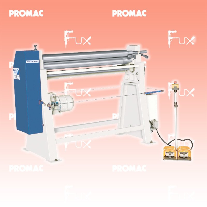 Zu "Motorisierte Rollmaschine" von Promac Promac CY75-12.2M Motorisierte Rollmaschine Bestell- und Artikelnummer: CY75-12/2M Maschine auf Sockel Gestell aus Gusseisen Asymmetrische Blechrundmaschine mit elektrischem Antrieb Möglichkeit der Positionierung des hinteren Zylinders, um konische Rundungen zu erzielen Maschine mit Umlenklager zum Herausziehen der vollständig geschlossenen Ringe Steuerung des Auf-/Abspringens der hinteren Walze über Handrad Technische Daten Motorleistung: 1,1 kW Nutzlänge: 1250 mm Maximale Rollendicke: 2 mm Einstechdicke: 1,5 mm Rollendurchmesser: 75 mm Minimaler Rollendurchmesser: 117 mm Maschinenabmessungen: 1100 x 2300 x 800 mm Nettogewicht: 510 kg Zubehör Listenpreis CHF 7'203.80 Fuxpreis CHF 6'483.00 inkl. 8.1% MwSt Frankolieferung Kein Grauimport! Produkt bestellen Das Produkt ist momentan nicht lieferbar!Bestätigen sie, dass sie damit einverstanden sind! 1 Stück 2 Stück 3 Stück 4 Stück 5 Stück 6 Stück 7 Stück 8 Stück 9 Stück 10 Stück Alle Angaben ohne Gewähr und solange Vorrat reicht!Lehrlingsrabatt? Produkt als PDF AKTION 10%