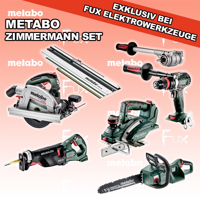 Zu "Zimmermann Set" von Metabo FULL Service: 36 Monate zum Nulltarif für Sie! Weitere Infos zum FULL Service Dieses Produkt ist CAS kompatibel! Weitere Infos zu CAS FUX SPECIAL EXKLUSIV BEI FUX Metabo Zimmermann SET 3 SOLO Bestell- und Artikelnummer: Zimmermann SET 3 SOLO BS 18 LTX BL Q I Akku-BohrschrauberAkkuspannung 18 V Drehzahl 0-550 / 0-2000 U/min Drehmoment hart / weich 130 / 65 Nm Gewicht (mit Akkupack) 2.3 kgInfos MS 36-18 LTX BL 40 Akku KettensägeAkkuspannung 18 V Schnittlänge 36 cm Max. Kettengeschwindigkeit 22 m/s Gewicht mit Akkupack 4,6 kgInfos SSEP 18 LTX BL MVT Akku-SäbelsägeAkkuspannung 18 V Hubzahl bei Leerlauf 0 - 3.000 /min Gewicht (mit Akkupack) 4.6 kgInfos HO 18 LTX 20-82 Akku-Einhand-HobelAkkuspannung 18 V Hobelbreite 82 mm Spanabnahme einstellbar 0-2 mm Gewicht 3.5 KgInfos KS 18 LTX 66 BL Akku HandkreissägeAkkuspannung 18 V Schnitt-Tiefe bei 90° 0-66 mm Sägeblatt 165 mm Gewicht 4.5 kgInfos Drehmomentvorsatz Power X3Drehmomentvorsatz ermöglicht dreifache Leistungssteigerung der Maschine (Drehmoment) für härteste AnwendungenInfos Kappschiene KFS 44Gesamtlänge 834 mm Schnittlänge 440 mmInfos Registriere die in diesem Set vorhandenen Metabo Maschinen auf metabo.ch, und ergattere dir bis zu 5 Gratis Akkus!Zusätzlich offerieren wir zu diesem Set einen Gratis Akku!OHNE AKKUS UND LADEGERÄT Standard-Ausrüstung In diesem Set enthalten: BS 18 LTX BL Q I Akku-Bohrschrauber MS 36-18 LTX BL 40 Akku Kettensäge SSEP 18 LTX BL MVT Akku-Säbelsäge HO 18 LTX 20-82 Akku-Einhand-Hobel KS 18 LTX 66 BL Akku Handkreissäge Drehmomentvorsatz Power X3 Kappschiene KFS 44 Listenpreis CHF 2'218.50 Fuxpreis CHF 1'604.00 inklusive 8.1% MwSt Versand CHF 25.00 Kein Grauimport! Produkt bestellen 1 Stück 2 Stück 3 Stück 4 Stück 5 Stück 6 Stück 7 Stück 8 Stück 9 Stück 10 Stück Alle Angaben ohne Gewähr und solange Vorrat reicht!Wiederverkäufer werden? Produkt als PDF NEUHEITAKTION 27%