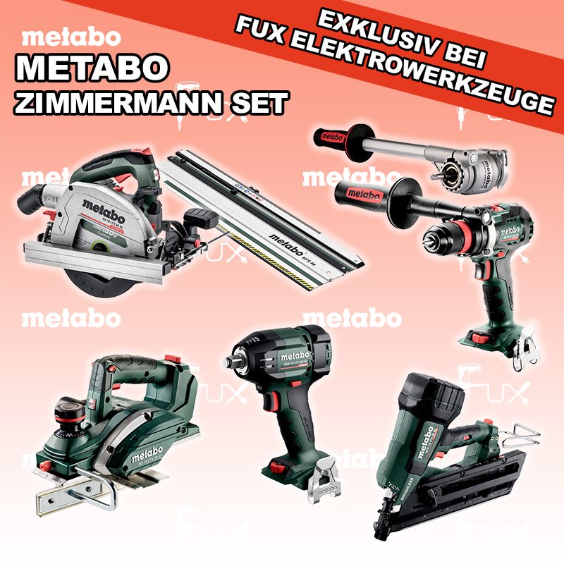 Zu "Zimmermann Set" von Metabo FULL Service: 36 Monate zum Nulltarif für Sie! Weitere Infos zum FULL Service Dieses Produkt ist CAS kompatibel! Weitere Infos zu CAS FUX SPECIAL EXKLUSIV BEI FUX Metabo Zimmermann SET 9 SOLO Bestell- und Artikelnummer: Zimmermann SET 9 SOLO BS 18 LTX BL Q I Akku-BohrschrauberAkkuspannung 18 V Drehzahl 0-550 / 0-2000 U/min Drehmoment hart / weich 130 / 65 Nm Gewicht (mit Akkupack) 2.3 kgInfos SSW 18 LTX 550 BL Akku-SchlagschrauberAkkuspannung 18 V Anziehdrehmoment 550 Nm Werkzeugaufnahme 1/2" Gewicht ohne Akkupack 1,4 kgInfos NFR 18 LTX 90 BL Akku NaglerAkkuspannung 18 V Nagelstreifen Winkel 30 - 34 ° Nagellänge 50 - 90 mm Nageldurchmesser 2,9 - 3,3 mm Gewicht ohne Akkupack 4,1 kgInfos HO 18 LTX 20-82 Akku-Einhand-HobelAkkuspannung 18 V Hobelbreite 82 mm Spanabnahme einstellbar 0-2 mm Gewicht 3.5 KgInfos KS 18 LTX 66 BL Akku HandkreissägeAkkuspannung 18 V Schnitt-Tiefe bei 90° 0-66 mm Sägeblatt 165 mm Gewicht 4.5 kgInfos Drehmomentvorsatz Power X3Drehmomentvorsatz ermöglicht dreifache Leistungssteigerung der Maschine (Drehmoment) für härteste AnwendungenInfos Kappschiene KFS 44Gesamtlänge 834 mm Schnittlänge 440 mmInfos Registriere die in diesem Set vorhandenen Metabo Maschinen auf metabo.ch, und ergattere dir bis zu 5 Gratis Akkus!Zusätzlich offerieren wir zu diesem Set einen Gratis Akku!OHNE AKKUS UND LADEGERÄT Standard-Ausrüstung In diesem Set enthalten: BS 18 LTX BL Q I Akku-Bohrschrauber SSW 18 LTX 550 BL Akku-Schlagschrauber NFR 18 LTX 90 BL Akku Nagler HO 18 LTX 20-82 Akku-Einhand-Hobel KS 18 LTX 66 BL Akku Handkreissäge Drehmomentvorsatz Power X3 Kappschiene KFS 44 Listenpreis CHF 2'398.50 Fuxpreis CHF 1'734.00 inklusive 8.1% MwSt Versand CHF 25.00 Kein Grauimport! Produkt bestellen 1 Stück 2 Stück 3 Stück 4 Stück 5 Stück 6 Stück 7 Stück 8 Stück 9 Stück 10 Stück Alle Angaben ohne Gewähr und solange Vorrat reicht!Wiederverkäufer werden? Produkt als PDF NEUHEITAKTION 27%
