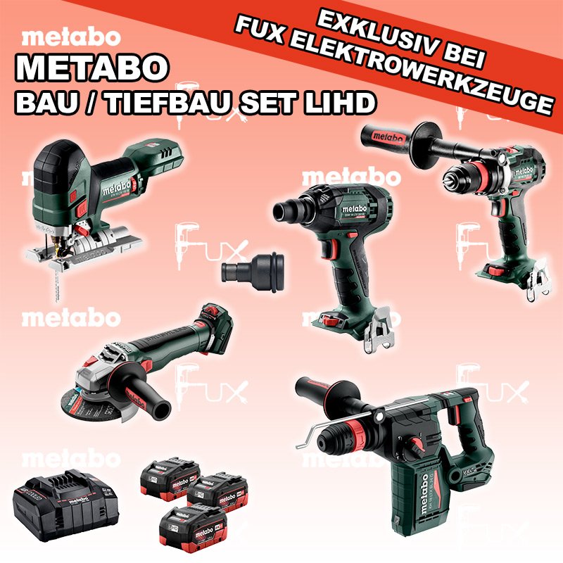 Zu "Bau / Tiefbau Set" von Metabo FULL Service: 36 Monate zum Nulltarif für Sie! Weitere Infos zum FULL Service FUX SPECIAL EXKLUSIV BEI FUX Metabo Bau / Tiefbau Set 1 Bestell- und Artikelnummer: Bau / Tiefbau Set 1 BS 18 LTX BL Q I Akku-BohrschrauberAkkuspannung 18 V Drehzahl 0-550 / 0-2000 U/min Drehmoment hart / weich 130 / 65 Nm Gewicht (mit Akkupack) 2.3 kgInfos STA 18 LTX 150 BL Akku-StichsägeAkkuspannung 18 V Hubzahl 1.000-3.500 /min Gewicht ohne Akkupack 1.9 kgInfos KH 18 LTX BL 24 Q Akku-KombihammerAkkuspannung 18 V Einzelschlagstärke 2.2 J Bohrleistung in Beton 24 mm Gewicht ohne Akkupack 3 kgInfos WVB 18 LT BL 11-125 Quick Akku-WinkelschleiferAkkuspannung 18 V Drehzahl 2.800 - 10.000 / min Ø 125 mm Scheiben Gewicht (mit Akkupack) 2.5 kgInfos SSW 18 LTX 300 BL Akku-SchlagschrauberAkkuspannung 18 V Anziehdrehmoment 300 Nm Werkzeugaufnahme 1/2" Gewicht 1.7 kgInfos Reduktions Adapter 1/2" auf 1/4" Aufnahme Max. 350 Nm Länge 45 mmInfos 3 x 18 V, 5.5 Ah, LiHD Akkupack18 V 5.5 Ah ( LiHD Akkus ) Infos ASC 145, 12 - 36 V "Air Cooled" LadegerätZum Aufladen aller Li-Power Schiebesitz-Akkupacks (12 V - 36 V). Ladestrom 8.0 AInfos Registriere die in diesem Set vorhandenen Metabo Maschinen auf metabo.ch, und ergattere dir bis zu 5 Gratis Akkus!Zusätzlich offerieren wir zu diesem Set einen Gratis Akku! Standard-Ausrüstung In diesem Set enthalten: BS 18 LTX BL Q I Akku-Bohrschrauber STA 18 LTX 150 BL Akku-Stichsäge KH 18 LTX BL 24 Q Akku-Kombihammer WVB 18 LT BL 11-125 Quick Akku-Winkelschleifer SSW 18 LTX 300 BL Akku-Schlagschrauber Reduktions Adapter 3 x 18 V, 5.5 Ah, LiHD Akkupack ASC 145, 12 - 36 V "Air Cooled" Ladegerät Listenpreis CHF 2'252.00 Fuxpreis CHF 1'539.00 inklusive 8.1% MwSt Frankolieferung Kein Grauimport! Produkt bestellen 1 Stück 2 Stück 3 Stück 4 Stück 5 Stück 6 Stück 7 Stück 8 Stück 9 Stück 10 Stück Alle Angaben ohne Gewähr und solange Vorrat reicht!Wiederverkäufer werden? Produkt als PDF NEUHEITAKTION 31%