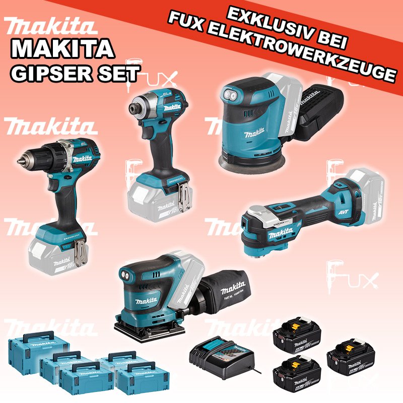 Zu "Gipser Set" von Makita FUX SPECIAL EXKLUSIV BEI FUX Makita Gipser Set 7 Bestell- und Artikelnummer: maGipser Set 7 DDF484ZJ Akku-BohrschrauberAkkuspannung 18 V Drehzahlen 0-500 / 0-2000 U/min Drehmoment hart / weich 54 / 30 Nm Gewicht 1.5 kgInfos DTD173Z Akku-SchlagschrauberAkkuspannung 18 V Anziehdrehmoment 20 / 50 / 170 / 180 Nm Werkzeugaufnahme 1/4" (Innensechskant) Gewicht inkl. Akku 1.2 - 1.5 kgInfos DTM52Z Multifunktions WerkzeugAkkuspannung 18 V Schwingungen 10000 - 20000 min-1 Werkzeugaufnahme Starlock Max System Gewicht inkl. Akku 2.0 kg Infos DBO480ZJ Akku-SchwingschleiferAkkuspannung 18 V Schleifplattengröße 112 x 102 mm Schwingungen pro Minute 11 000 / 14 000 min⁻¹ Gewicht inkl. Akku 1.7 kgInfos DBO180ZJ Akku-ExzenterschleiferAkkuspannung 18 V Exzenterhub 2,8 mm Schleifteller (Ø) 125 mm Gewicht 3.6 kgInfos 3 x BL 1860 B ( Li-Ion Akku )18 V 6.0 Ah ( Li-Ion Akku ) Infos DC 18 RC Schnell-Ladegerätfür Akkus 14.4 - 18 Volt ( Li-Ion Akkus )Infos MAKPAC Gr. 2Produktabmessung (L x B x H) 395 x 295 x 163 mm Infos Einsatz für diverse Schlagschrauber Einsatz für DDF083, DDF483, DHP483, DTD134, DTD137, DTD146, DTD148, DTD152, DTD153, DTD154, DTD155, DTD170, DTD171, DTP131, DTP141, DTS130, DTS131, DTS141, DTW180, DTW181, DTW250, DTW251, DTW284, DTW285Infos MAKPAC Gr. 3Produktabmessung (L x B x H) 377 x 277 x 176 mm Infos Einsatz für DTM52 Einsatz für DTM52 Makpac Koffer Typ C (821551-8) Infos Standard-Ausrüstung In diesem Set enthalten: DDF484ZJ Akku-Bohrschrauber DTD173Z Akku-Schlagschrauber DTM52Z Multifunktions Werkzeug DBO480ZJ Akku-Schwingschleifer DBO180ZJ Akku-Exzenterschleifer 3 x BL 1860 B ( Li-Ion Akku ) DC 18 RC Schnell-Ladegerät MAKPAC Gr. 2 Einsatz für diverse Schlagschrauber MAKPAC Gr. 3 Einsatz für DTM52 Geliefert im Koffer Zubehör Listenpreis CHF 1'883.00 Fuxpreis CHF 1'275.00 inklusive 8.1% MwSt Versand CHF 20.00 Kein Grauimport! Produkt bestellen 1 Stück 2 Stück 3 Stück 4 Stück 5 Stück 6 Stück 7 Stück 8 Stück 9 Stück 10 Stück Option: Makita BL 1860 B ( Li-lon Akku ) für CHF 95.- statt CHF 124.-Infos Alle Angaben ohne Gewähr und solange Vorrat reicht!Wiederverkäufer werden? Produkt als PDF NEUHEITAKTION 32%