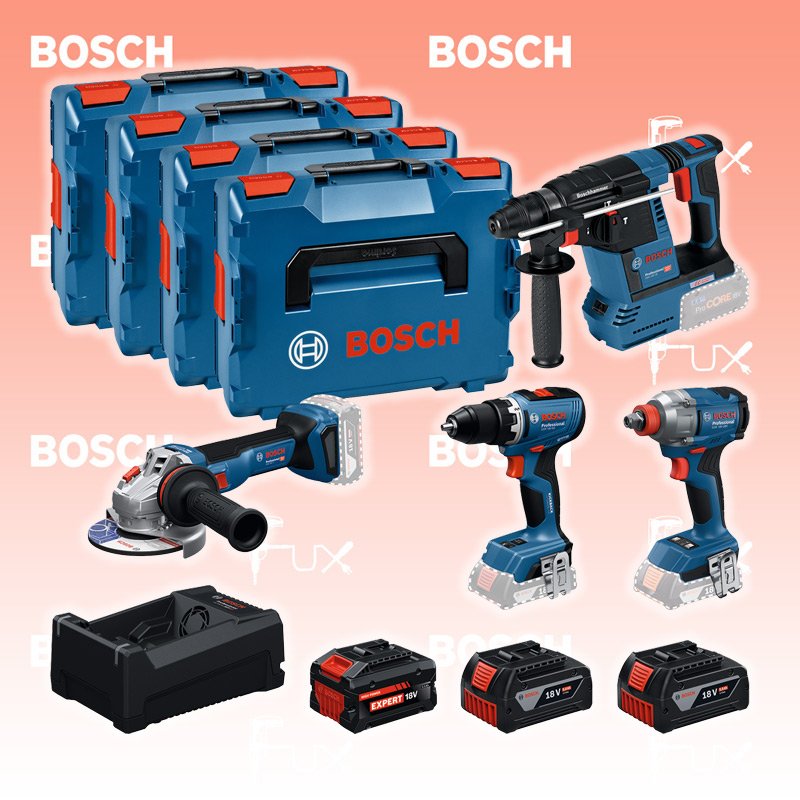 Zu "Combo Kit / Profi - Set" von Bosch Professional Bosch Professional 4 tlg. Combo Kit 18V GSR, GDX, GBH, GWS Bestell- und Artikelnummer: 0615A500BJ GSR 18V-65 Akku-SchlagbohrmaschineAkkuspannung 18 V Drehzahlen 0 – 550 / 0 – 2100 min⁻¹ Drehmoment (weich/hart) 31 / 63 Nm Gewicht exkl. Akku 1.06 kgInfos GDX 18V-285 Akku-DrehschlagschrauberAkkuspannung 18 V Anziehdrehmoment 285 Nm Werkzeugaufnahme 1/4" & 1/2" Gewicht exkl. Akku 1.1 kg Infos GBH 18V-26 Akku-BohrhammerAkkuspannung 18 V Einzelschlagstärke 2.6 J Bohrleistung in Beton 4 - 26 mm Gewicht inkl. Akku 3,5 kg Infos GWS 18V-11 Akku-WinkelschleiferAkkuspannung 18 V Leerlaufdrehzahl 9000 min⁻¹ Scheiben-Ø 125 mm Gewicht inkl. Akku 1.7 kg Infos EXPERT EXBA18V-55 AkkupackAkkuspannung 18 V Akkukapazität 5.5 Ah Gewicht 1.02 kgInfos 2 x GBA 18V 5.0Ah Akkupack18 V 5.0 Ah ( Li-Ion Akkus ) Gewicht 620 gInfos GAL 12 V/18V-80 SchnellladegerätAkkuspannung 12 V & 18 V Gewicht 0.65 kgInfos Standard-Ausrüstung In diesem Set enthalten: GSR 18V-65 Akku-Schlagbohrmaschine GDX 18V-285 Akku-Drehschlagschrauber GBH 18V-26 Akku-Bohrhammer GWS 18V-11 Akku-Winkelschleifer EXPERT EXBA18V-55 Akkupack 2 x GBA 18V 5.0Ah Akkupack GAL 12 V/18V-80 Schnellladegerät Geliefert im Koffer Zubehör Verbrauchsmaterial Listenpreis CHF 1'178.00 Fuxpreis CHF 1'001.00 inklusive 8.1% MwSt Frankolieferung Kein Grauimport! Produkt bestellen 1 Stück 2 Stück 3 Stück 4 Stück 5 Stück 6 Stück 7 Stück 8 Stück 9 Stück 10 Stück Alle Angaben ohne Gewähr und solange Vorrat reicht! Produkt als PDF NEUHEITAKTION 15%