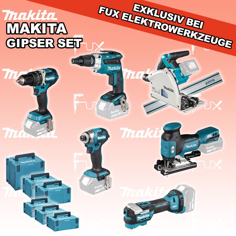 Zu "Gipser Set" von Makita FUX SPECIAL EXKLUSIV BEI FUX Makita Gipser Set 11 SOLO Bestell- und Artikelnummer: maGipser Set 11 SOLO DHP484ZJ Akku-SchlagbohrschrauberAkkuspannung 18 V Drehzahlen 0-500 / 0-2000 U/min Drehmoment hart / weich 54 / 30 Nm Gewicht 1.6 kgInfos DFS251ZJ Akku-SchrauberAkkuspannung 18 V Drehzahl 0-2500 U/min Werkzeugaufnahme 1/4" (Innensechskant) Gewicht 1.5 kgInfos DTM52Z Multifunktions WerkzeugAkkuspannung 18 V Schwingungen 10000 - 20000 min-1 Werkzeugaufnahme Starlock Max System Gewicht inkl. Akku 2.0 kg Infos DJV18ZJ Akku-StichsägeAkkuspannung 18 V Hubzahl 800 - 3500/ min Schnittleistung Holz 135 mm / Stahl 10 mm Gewicht 2.5 kgInfos DTD173Z Akku-SchlagschrauberAkkuspannung 18 V Anziehdrehmoment 20 / 50 / 170 / 180 Nm Werkzeugaufnahme 1/4" (Innensechskant) Gewicht inkl. Akku 1.2 - 1.5 kgInfos DSP601ZJU Eintauch-KreissägeAkkuspannung 2 x 18 V Sägeblatt (Ø) 165 mm Schnitttiefe bei 90° 56 mm Gewicht (EPTA) 5.1 kg Infos MAKPAC Gr. 3Produktabmessung (L x B x H) 377 x 277 x 176 mm Infos Einsatz für DTM52 Einsatz für DTM52 Makpac Koffer Typ C (821551-8) Infos MAKPAC Gr. 2Produktabmessung (L x B x H) 395 x 295 x 163 mm Infos Einsatz für diverse Schlagschrauber Einsatz für DDF083, DDF483, DHP483, DTD134, DTD137, DTD146, DTD148, DTD152, DTD153, DTD154, DTD155, DTD170, DTD171, DTP131, DTP141, DTS130, DTS131, DTS141, DTW180, DTW181, DTW250, DTW251, DTW284, DTW285Infos Führungsschiene L = 140 cmgeeignet für SP6000 Handkreissäge mit passenden Adapter Auch für weitere Handkreissägen und Stichsägen geeignet mit passendem Adapter. ( 194579-2 )Infos OHNE AKKUS UND LADEGERÄT Standard-Ausrüstung In diesem Set enthalten: DHP484ZJ Akku-Schlagbohrschrauber DFS251ZJ Akku-Schrauber DTM52Z Multifunktions Werkzeug DJV18ZJ Akku-Stichsäge DTD173Z Akku-Schlagschrauber DSP601ZJU Eintauch-Kreissäge MAKPAC Gr. 3 Einsatz für DTM52 MAKPAC Gr. 2 Einsatz für diverse Schlagschrauber Führungsschiene L = 140 cm Geliefert im Koffer Zubehör Listenpreis CHF 2'202.00 Fuxpreis CHF 1'525.00 inklusive 8.1% MwSt Versand CHF 20.00 Kein Grauimport! Produkt bestellen 1 Stück 2 Stück 3 Stück 4 Stück 5 Stück 6 Stück 7 Stück 8 Stück 9 Stück 10 Stück Option: Makita BL 1860 B ( Li-lon Akku ) für CHF 95.- statt CHF 124.-Infos Alle Angaben ohne Gewähr und solange Vorrat reicht!Wiederverkäufer werden? Produkt als PDF NEUHEITAKTION 30%
