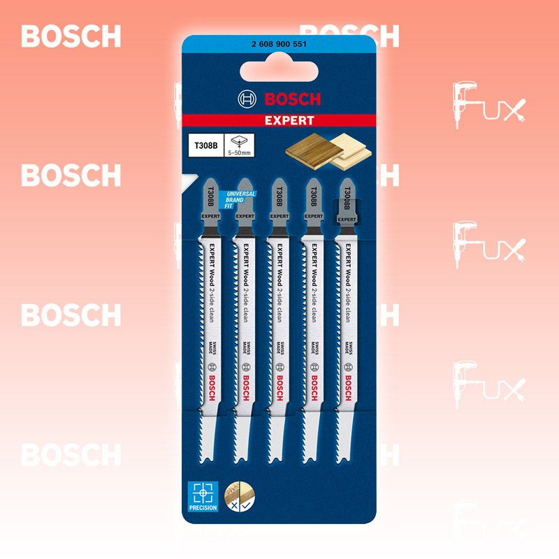 Zu "Wood 2-side clean Stichsägeblätter " von Bosch Professional Bosch Expert Wood 2-side clean Bestell- und Artikelnummer: 2608900551 Oben wie unten sehr sauberer Abschluss Hochpräzises, ausrissfreies Schneiden von Holz Extrascharfe Zähne durch Präzisionsschliff Schneideart gerade geeignet für: Massivholz-Möbelplatte Sperrholz Weichholz Technische Daten Type T 308 B Gesamtlänge 117 mm Standard-Ausrüstung Verkaufseinheit 10 x 5 Stk. Listenpreis CHF 148.60 Fuxpreis CHF 119.00 inklusive 8.1% MwSt Versand CHF 15.00 Kein Grauimport! Produkt bestellen Verkaufseinheit 10 x 5 Stk. 1 Stück 2 Stück 3 Stück 4 Stück 5 Stück 6 Stück 7 Stück 8 Stück 9 Stück 10 Stück 11 Stück 12 Stück 13 Stück 14 Stück 15 Stück 16 Stück 17 Stück 18 Stück 19 Stück 20 Stück 21 Stück 22 Stück 23 Stück 24 Stück 25 Stück 26 Stück 27 Stück 28 Stück 29 Stück 30 Stück 31 Stück 32 Stück 33 Stück 34 Stück 35 Stück 36 Stück 37 Stück 38 Stück 39 Stück 40 Stück 41 Stück 42 Stück 43 Stück 44 Stück 45 Stück 46 Stück 47 Stück 48 Stück 49 Stück 50 Stück Alle Angaben ohne Gewähr und solange Vorrat reicht! Produkt als PDF 20%