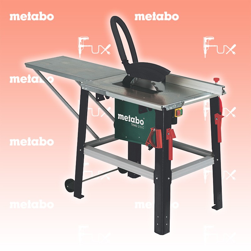 Zu "Baukreissägen" von Metabo Metabo TKHS 315 C - 2,8 DNB-400 V Tischkreissäge Bestell- und Artikelnummer: 0103152100 Drehmomentstarker Drehstrommotor Universelle Tischkreissäge in Basisausstattung Ideal zum Sägen von Kanthölzern, Brettern, Platten und holzähnlichen Materialien in der Werkstatt und auf der Baustelle Leiser Induktionsmotor mit Motorbremse und Überlastschutz - wartungsfrei und robust Wiederanlaufschutz: verhindert unbeabsichtigtes Anlaufen nach Stromunterbrechung Universalanschlag mit Magnetführung für exakte Längs- und Gehrungsschnitte Stufenlos höhenverstellbares Sägeblatt Komfortable Einstellung der Sägeblattneigung von vorne Robuste, pulverbeschichtete Stahlblechkonstruktion und verzinkte Tischplatte Gestell und Motor vormontiert Technische Daten Maße L x B x H 1.650 x 650 x 1.000 mm Tischgröße (min/max) 800 x 550 mm Arbeitshöhe 850 mm Schnitthöhe 0 - 85 mm Max. Schnitthöhe 90/45° 85 mm/60 mm Leerlaufdrehzahl 2.990 /min Sägeblatt Ø 315 x 30 mm Sägeblatt-Schwenkbereich 0 - 45 ° Nennaufnahmeleistung 2,8 kW Abgabeleistung 2,15 kW Gewicht 64 kg Standard-Ausrüstung Hartmetall-Sägeblatt mit Wechselzahn (24 Zähne) Fahrgestell inkl. Handgriffe Universalanschlag Tischverlängerung (550 x 800 mm) Späneabsaugeinrichtung Schiebestock Zubehör Verbrauchsmaterial Listenpreis CHF 519.00 Fuxpreis CHF 441.00 inkl. 8.1% MwSt, inkl vRG Frankolieferung Kein Grauimport! Produkt bestellen 1 Stück 2 Stück 3 Stück 4 Stück 5 Stück 6 Stück 7 Stück 8 Stück 9 Stück 10 Stück Option: Bestellen Sie das Produkt zum Listenpreis, und erhalten dafür 36 Monate Fux ALL-IN-ServiceInfos Alle Angaben ohne Gewähr und solange Vorrat reicht!Wiederverkäufer werden?Lehrlingsrabatt? Produkt als PDF AKTION 15%