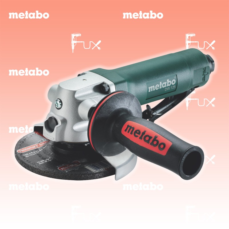Zu "Druckluft-Winkelschleifer" von Metabo Metabo DW 125 Winkelschleifer Bestell- und Artikelnummer: 601556000 Zum Schleifen von ebenen und gewölbten Flächen unterschiedlichster Materialien Ergonomisches, kälteisolierendes und leichtes Gehäuse aus schlagfestem Kunststoff Anwenderfreundliche Abluftführung durch den Handgriff vermeidet Staubaufwirbelung im Arbeitsbereich Schallgedämpfter Luftaustritt für geräuschreduziertes Arbeiten Sicherheitshebel verhindert unbeabsichtigtes Einschalten der Maschine Für die Verwendung mit Schrupp- und Trennscheiben Ø 125 mm Umfangreiche Schleif- und Trennscheiben im Metabo-Sortiment erhältlich Technische Daten Schleifscheiben-Ø 125 mm Arbeitsdruck 6,2 bar Luftbedarf 500 l/min Leerlaufdrehzahl 10.000 /min Spindelgewinde M 14 Gewicht 1,8 kg Standard-Ausrüstung EURO und ARO/Orion Stecknippel 1/4" Sechskantschlüssel Zusatzhandgriff Zweilochschlüssel Schutzhaube für Teller Maulschlüssel Öl-Fläschchen Zubehör Verbrauchsmaterial Listenpreis CHF 339.00 Fuxpreis CHF 288.00 inkl. 8.1% MwSt, inkl vRG Frankolieferung Kein Grauimport! Produkt bestellen 1 Stück 2 Stück 3 Stück 4 Stück 5 Stück 6 Stück 7 Stück 8 Stück 9 Stück 10 Stück Option: Bestellen Sie das Produkt zum Listenpreis, und erhalten dafür 36 Monate Fux ALL-IN-ServiceInfos Alle Angaben ohne Gewähr und solange Vorrat reicht!Wiederverkäufer werden?Lehrlingsrabatt? Produkt als PDF AKTION 15%