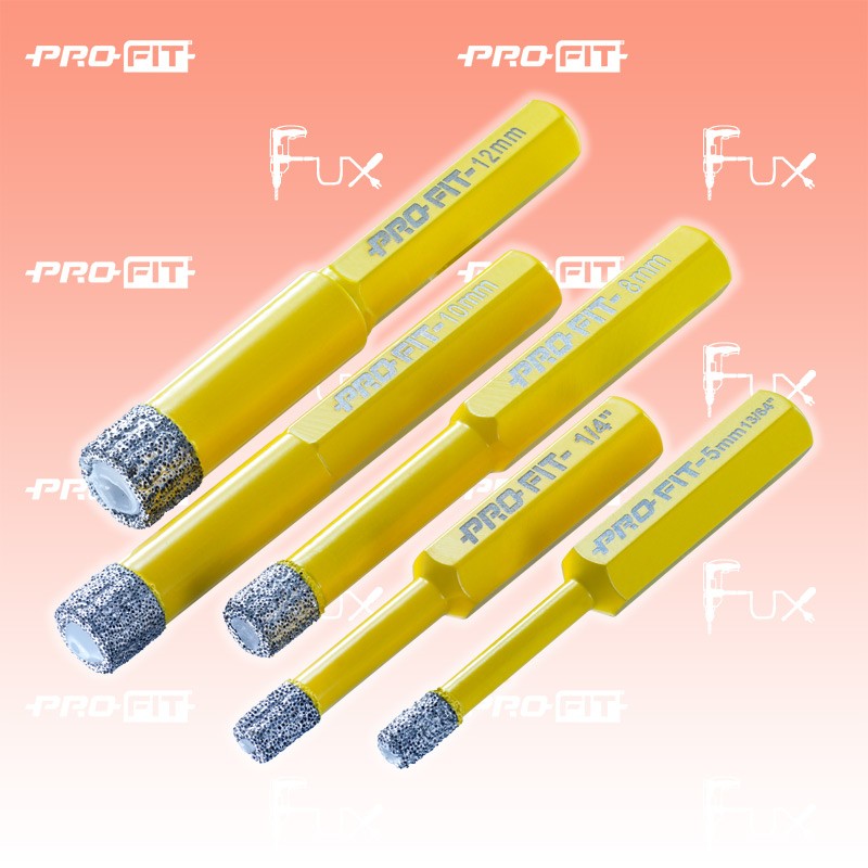 In bewährter "PRO-FIT"-Qualität, für die trockene Anwendung in fast allen Materialien, wie Feinsteinzeug, Granit, Marmor, etc.: