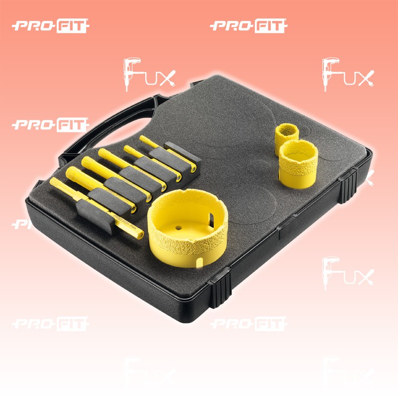 Zu "Diamantbohrer-Satz" von Pro-Fit Lochsägen Pro-Fit Lochsägen Diamantbohrer-Satz "SANITÄR", 9-teilig Bestell- und Artikelnummer: 0903305681 Der PROFI-Diamantbohrer für trockene Anwendungen! In bewährter "PRO-FIT"-Qualität, für die trockene Anwendung in fast allen Materialien, wie Feinsteinzeug, Granit, Marmor, etc.: zum Trockenbohren ideal für Anwendung mit Bohrmaschinen mit Wachs-Seele zur optimalen, selbständigen Kühlung (Grösse 5-12) div. Grössen auch einzeln erhältlich Technische Daten Optimale Drehzahl 3000 U/Min. Drehzahlbereich 1500 - 6500 U/Min. Länge der Diamantbohrer: Ø 5 / 6 mm = 68 mm Ø 8 -12 mm = 80 mm Standard-Ausrüstung je 1 Bohrer: Ø 5 / 6 / 8 / 10 / 12 mm 1 Zentrierbohrer 7 mm je 1 Lochsäge: Ø 22 / 35 / 68 mm Listenpreis CHF 609.40 Fuxpreis CHF 536.00 inkl. 8.1% MwSt Frankolieferung Kein Grauimport! Produkt bestellen 1 Stück 2 Stück 3 Stück 4 Stück 5 Stück 6 Stück 7 Stück 8 Stück 9 Stück 10 Stück Alle Angaben ohne Gewähr und solange Vorrat reicht!Lehrlingsrabatt? Produkt als PDF AKTION 12%