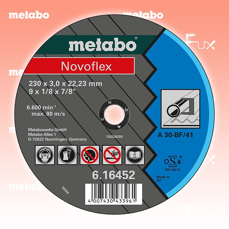Zu "Qualitätsklasse A 30 Trennscheiben" von Metabo Metabo Trennscheibe Stahl 115 mm Bestell- und Artikelnummer: 616454000 Qualität Novoflex: leistungsstarke Einstiegsklasse Härte: mittelhart Universell einsetzbar in der Metallbearbeitung Gute Schnittleistung bei guter Standzeit Arbeitshöchstgeschwindigkeit 80 m/s Technische Daten Qualitätsklasse A 30 Durchmesser x Dicke x Bohrung 115 x 2.5 x 22.23 Ausführung gekröpft Max. Drehzahl 13300 Standard-Ausrüstung Verkaufseinheit 25 Stk. Listenpreis CHF 50.00 Fuxpreis CHF 43.00 inkl. 8.1% MwSt, inkl vRG Versand CHF 15.00 Kein Grauimport! Produkt bestellen Verkaufseinheit 25 Stk. 1 Stück 2 Stück 3 Stück 4 Stück 5 Stück 6 Stück 7 Stück 8 Stück 9 Stück 10 Stück 11 Stück 12 Stück 13 Stück 14 Stück 15 Stück 16 Stück 17 Stück 18 Stück 19 Stück 20 Stück 21 Stück 22 Stück 23 Stück 24 Stück 25 Stück 26 Stück 27 Stück 28 Stück 29 Stück 30 Stück 31 Stück 32 Stück 33 Stück 34 Stück 35 Stück 36 Stück 37 Stück 38 Stück 39 Stück 40 Stück 41 Stück 42 Stück 43 Stück 44 Stück 45 Stück 46 Stück 47 Stück 48 Stück 49 Stück 50 Stück Alle Angaben ohne Gewähr und solange Vorrat reicht!Wiederverkäufer werden?Lehrlingsrabatt? Produkt als PDF AKTION 15%