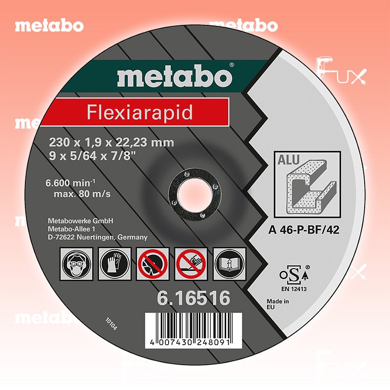 Zu "Qualitätsklasse A 60-P / A 46 P Trennscheiben" von Metabo Metabo Trennscheibe Stahl 125 mm Bestell- und Artikelnummer: 616513000 Dünne Hochleistungsscheibe speziell für die Bearbeitung von Aluminium, NE-Metallen, Kupfer, Messing, Bronze usw. und rostfreie, dünnwandige Materialien wie z. B. Rohre, Bleche, Profile, Drähte Härte: mittelhart Hohe Schnittleistung bei hoher Standzeit Arbeitshöchstgeschwindigkeit 80 m/s Achtung: In geschlossenen Räumen ist eine gute Absaugung Pflicht, da Aluminiumstaub in hoher Konzentration zu Explosionen führen kann! Technische Daten Qualitätsklasse A 60 P Durchmesser x Dicke x Bohrung 125 x 1 x 22,23 mm Ausführung gerade Max. Drehzahl 12200 Standard-Ausrüstung Verkaufseinheit 25 Stk. Listenpreis CHF 87.50 Fuxpreis CHF 74.00 inkl. 8.1% MwSt, inkl vRG Versand CHF 15.00 Kein Grauimport! Produkt bestellen Verkaufseinheit 25 Stk. 1 Stück 2 Stück 3 Stück 4 Stück 5 Stück 6 Stück 7 Stück 8 Stück 9 Stück 10 Stück 11 Stück 12 Stück 13 Stück 14 Stück 15 Stück 16 Stück 17 Stück 18 Stück 19 Stück 20 Stück 21 Stück 22 Stück 23 Stück 24 Stück 25 Stück 26 Stück 27 Stück 28 Stück 29 Stück 30 Stück 31 Stück 32 Stück 33 Stück 34 Stück 35 Stück 36 Stück 37 Stück 38 Stück 39 Stück 40 Stück 41 Stück 42 Stück 43 Stück 44 Stück 45 Stück 46 Stück 47 Stück 48 Stück 49 Stück 50 Stück Alle Angaben ohne Gewähr und solange Vorrat reicht!Wiederverkäufer werden?Lehrlingsrabatt? Produkt als PDF AKTION 15%