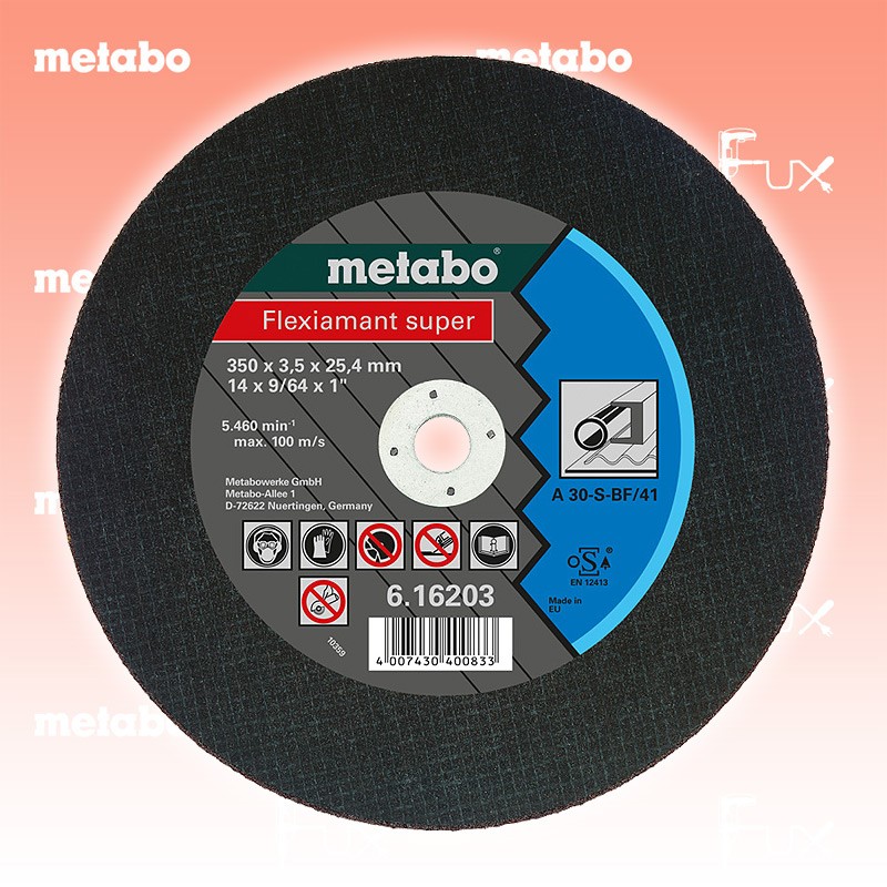 Zu "Qualitätsklasse A 30-S Trennscheiben" von Metabo Metabo Trennscheibe Stahl 350 mm Bestell- und Artikelnummer: 616203000 Universell einsetzbar in der Metallbearbeitung Härte: hart Hohe Schnittleistung bei hoher Standzeit Arbeitshöchstgeschwindigkeit 100 m/s Technische Daten Qualitätsklasse A 30 S Durchmesser x Dicke x Bohrung 350 x 3.5 x 25,4 mm Ausführung gerade Max. Drehzahl 5460 Standard-Ausrüstung Verkaufseinheit 10 Stk. Listenpreis CHF 235.00 Fuxpreis CHF 200.00 inkl. 8.1% MwSt, inkl vRG Frankolieferung Kein Grauimport! Produkt bestellen Verkaufseinheit 10 Stk. 1 Stück 2 Stück 3 Stück 4 Stück 5 Stück 6 Stück 7 Stück 8 Stück 9 Stück 10 Stück 11 Stück 12 Stück 13 Stück 14 Stück 15 Stück 16 Stück 17 Stück 18 Stück 19 Stück 20 Stück 21 Stück 22 Stück 23 Stück 24 Stück 25 Stück 26 Stück 27 Stück 28 Stück 29 Stück 30 Stück 31 Stück 32 Stück 33 Stück 34 Stück 35 Stück 36 Stück 37 Stück 38 Stück 39 Stück 40 Stück 41 Stück 42 Stück 43 Stück 44 Stück 45 Stück 46 Stück 47 Stück 48 Stück 49 Stück 50 Stück Alle Angaben ohne Gewähr und solange Vorrat reicht!Wiederverkäufer werden?Lehrlingsrabatt? Produkt als PDF AKTION 15%